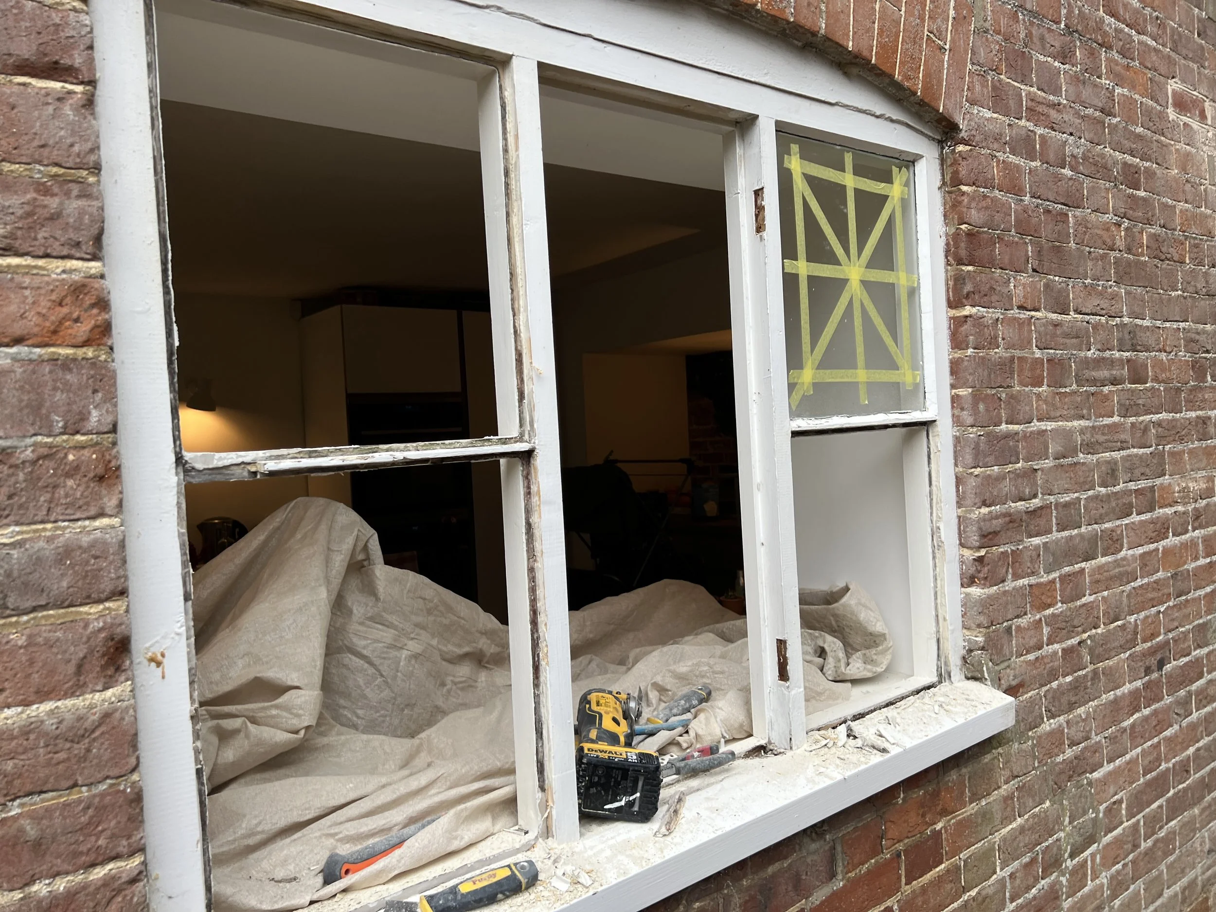 Cleaned up rebate, routed to correct depth ready to accept the new slimline double glazed units