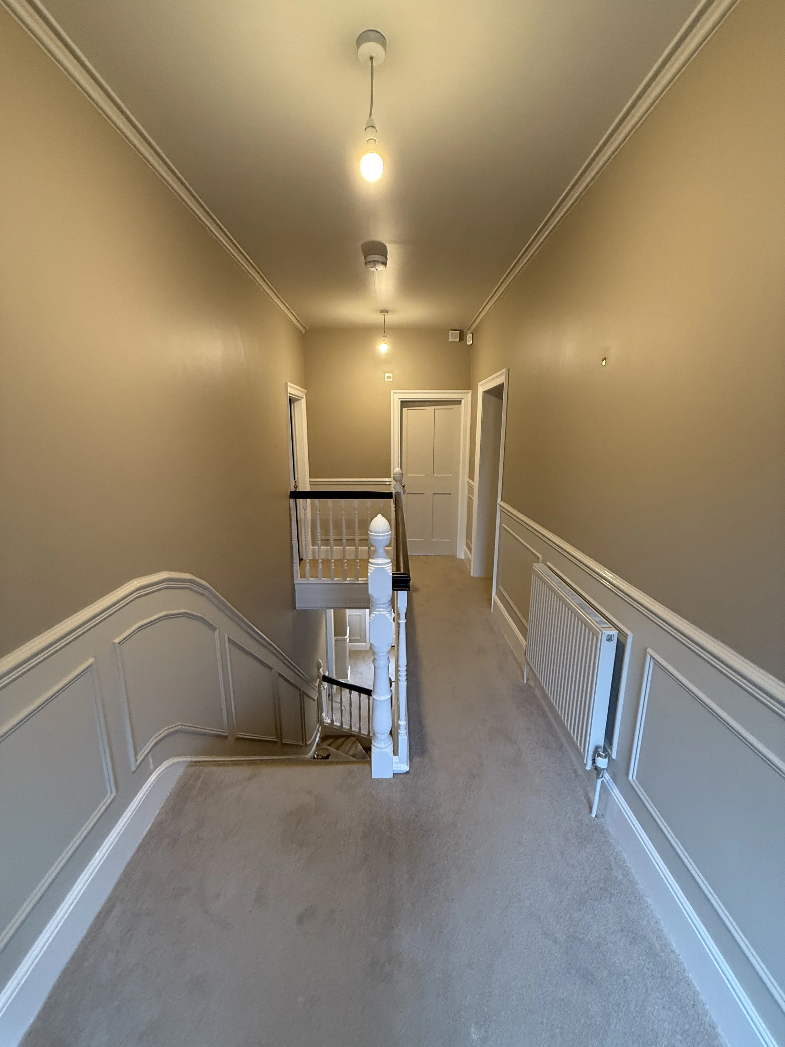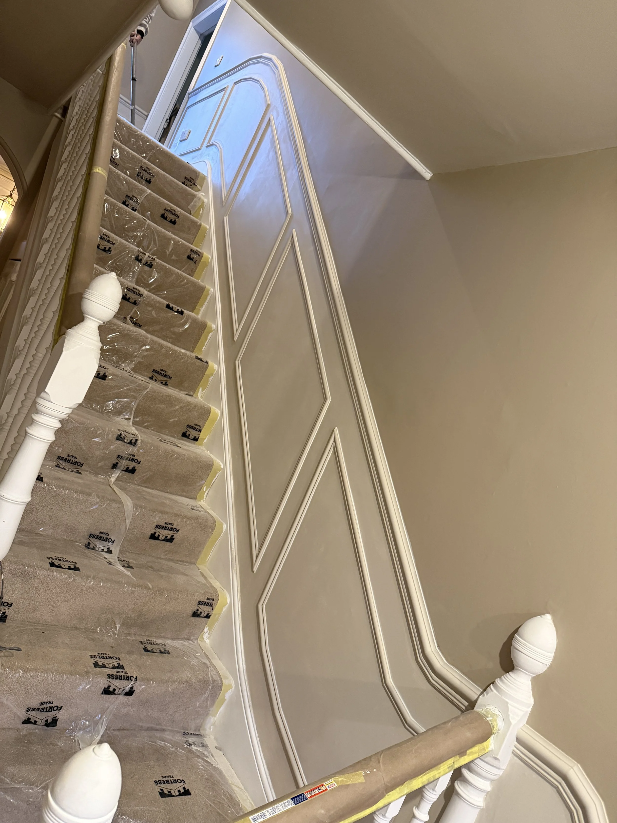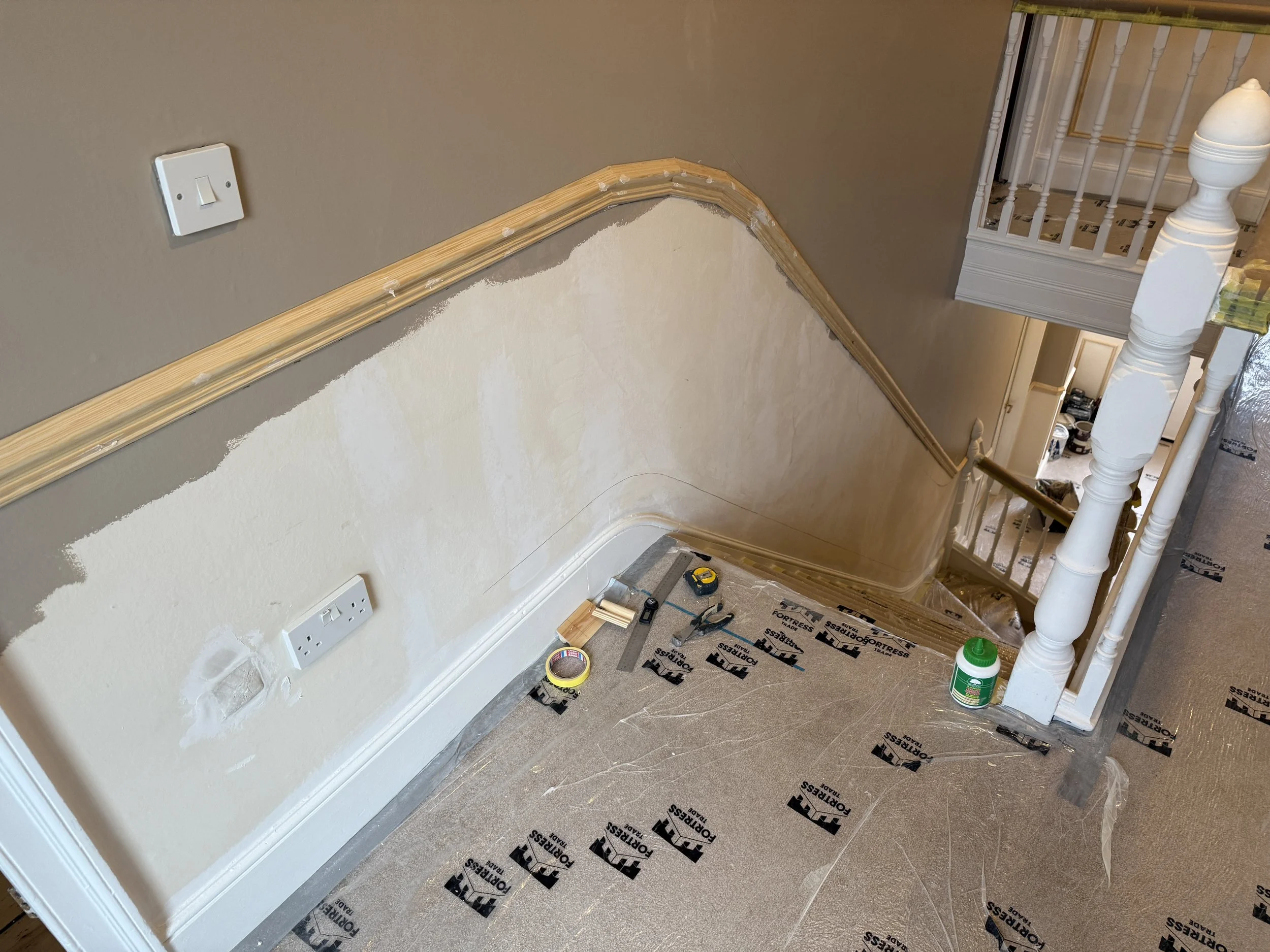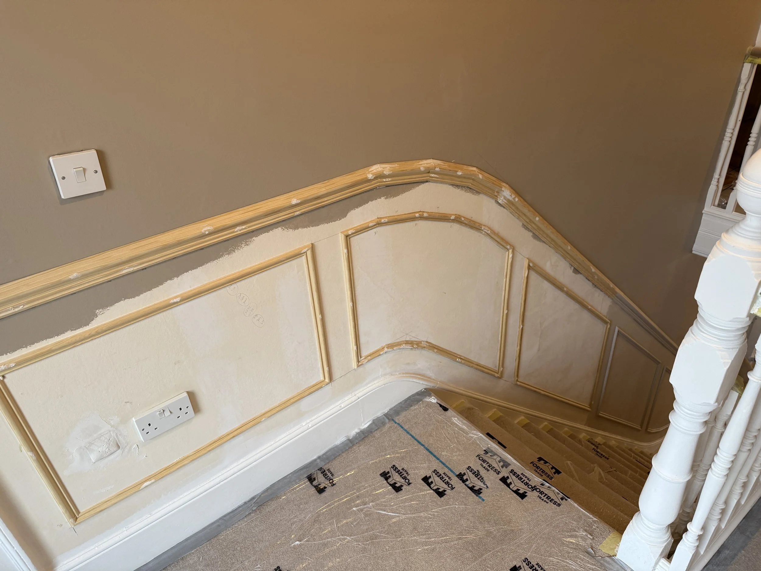 Caulking and getting it ready for the painter who is topcoating with Farrow and Ball paint in this two tone finish